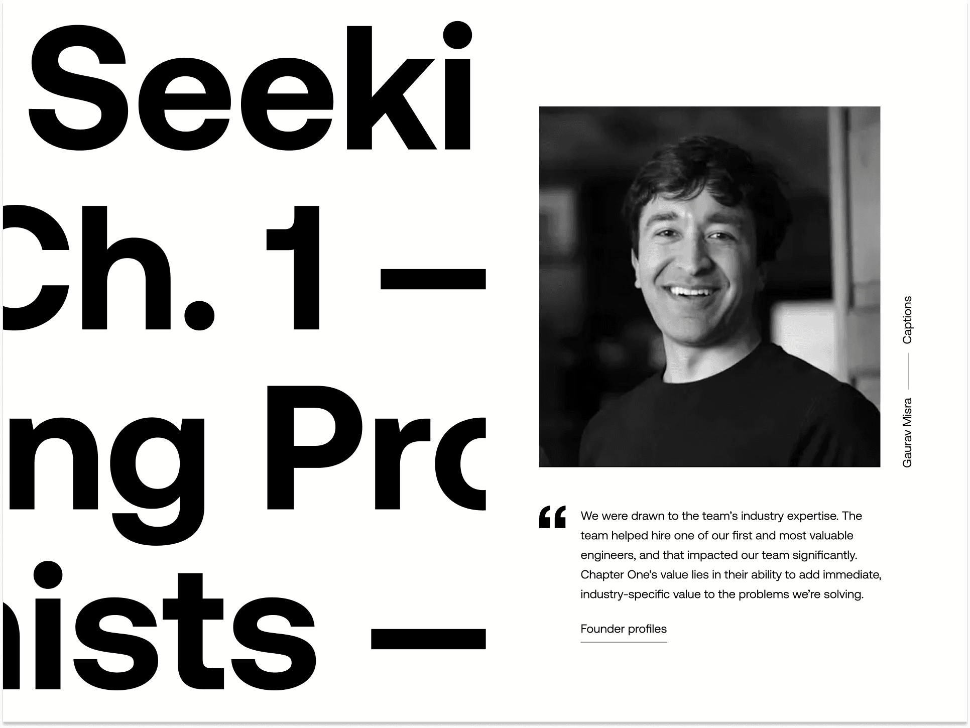 Chapter One, an early-stage venture fund, had outgrown their branding and needed something that more accurately conveyed who they were with a focus on creating something unique within their market and centred on the website as both the main touchpoint and most important component of their marketing collateral.